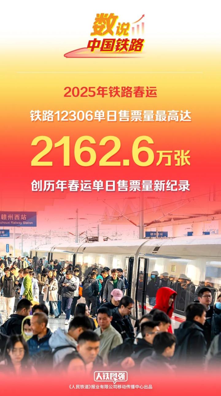 二是服务品质全面提升,出行体验更加美好。扩充铁路12306系统资源能力,加强安全风险监测防控,系统经受了多轮次大规模访问考验,运行整体安全平稳,单日售票量最高达2162.6万张,创历年春运单日售票量新纪录。用好候补购票、在线选铺、电子发票、铁路畅行码等功能,试点推行“系统自动提交购票订单”功能,上线学生、务工人员预约购票服务并优化相关规则,候补购票兑现率达75.2%,购票体验明显提升。持续改进车站安检验证服务,增设车站快速通行绿色通道,全国120个车站可实现便捷换乘,32个车站实行铁路到达旅客乘坐地铁免安检,主要客运车站增加充电设施。加强在途服务,铁路畅行码覆盖所有动车组列车,“静音车厢”服务拓展至99列动车组列车,全国89个车站提供互联网订餐服务,扩充热链餐食供应车站范围,餐食供应品类进一步丰富,让旅客享受“一碗好饭”。利用12306短信、微信等信息通知渠道,向旅客精准推送部分城市地铁、公交等动态信息,畅通旅客出行“最后一公里”。优化特殊重点旅客预约服务系统功能,提高线上和线下服务响应效率,老幼病残孕重点旅客出行更加温馨。创新开展“我的铁路风景”主题宣传活动,广大旅客、网友广泛参与,共征集作品超25万个,展示优秀作品2.3万余个,形成记录铁路风景、讲述中国故事的强大正能量。加强春节文化传播和文明出行宣传,面向旅客招募“文明引导员”,引领春运文明出行新风尚,营造了温暖祥和的旅行环境。